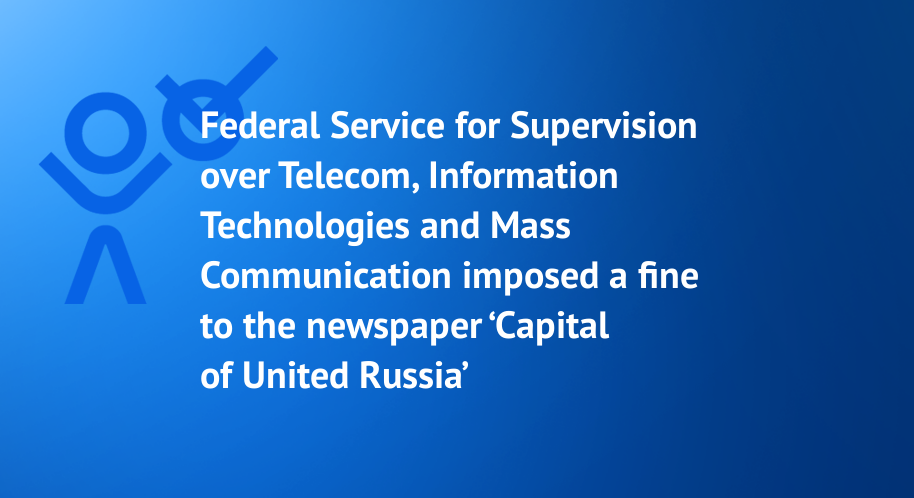Federal Service for Supervision over Telecom, Information Technologies and Mass Communication imposed a fine to the newspaper ‘Capital of United Russia’
