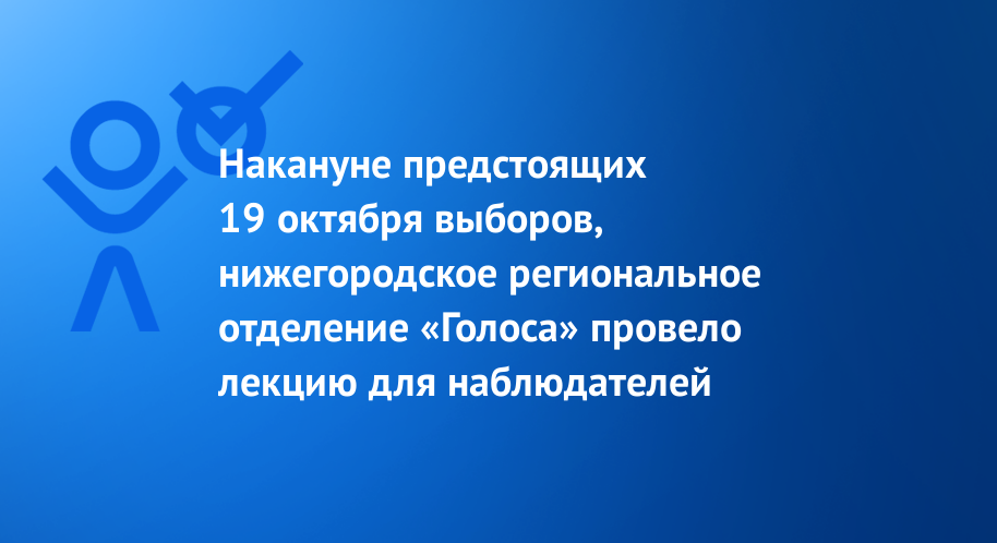 Накануне предстоящих 19 октября выборов, нижегородское региональное отделение "Голоса" провело лекцию для наблюдателей