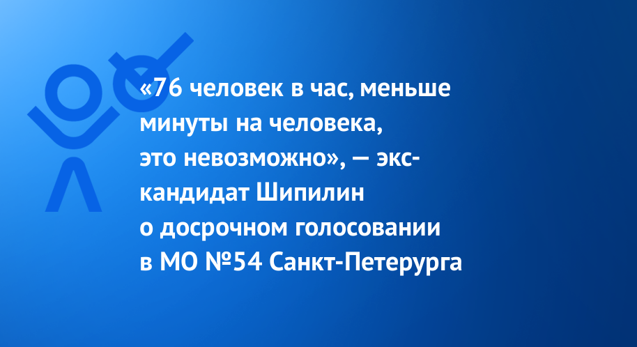"76 человек в час, меньше минуты на человека, это невозможно", -- экс-кандидат Шипилин о досрочном голосовании в МО №54 Санкт-Петерурга