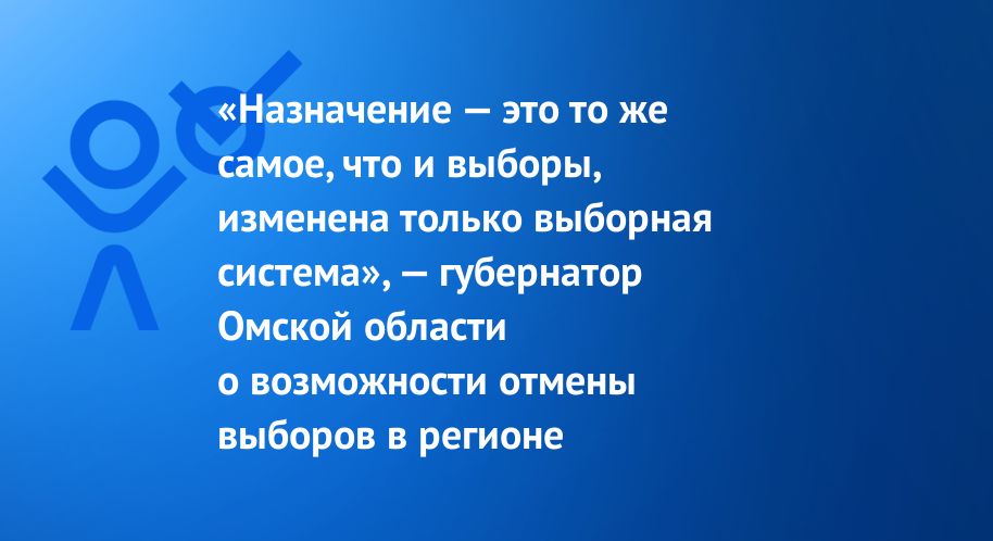 "Назначение — это то же самое, что и выборы, изменена только выборная система", -- губернатор Омской области о возможности отмены выборов в регионе